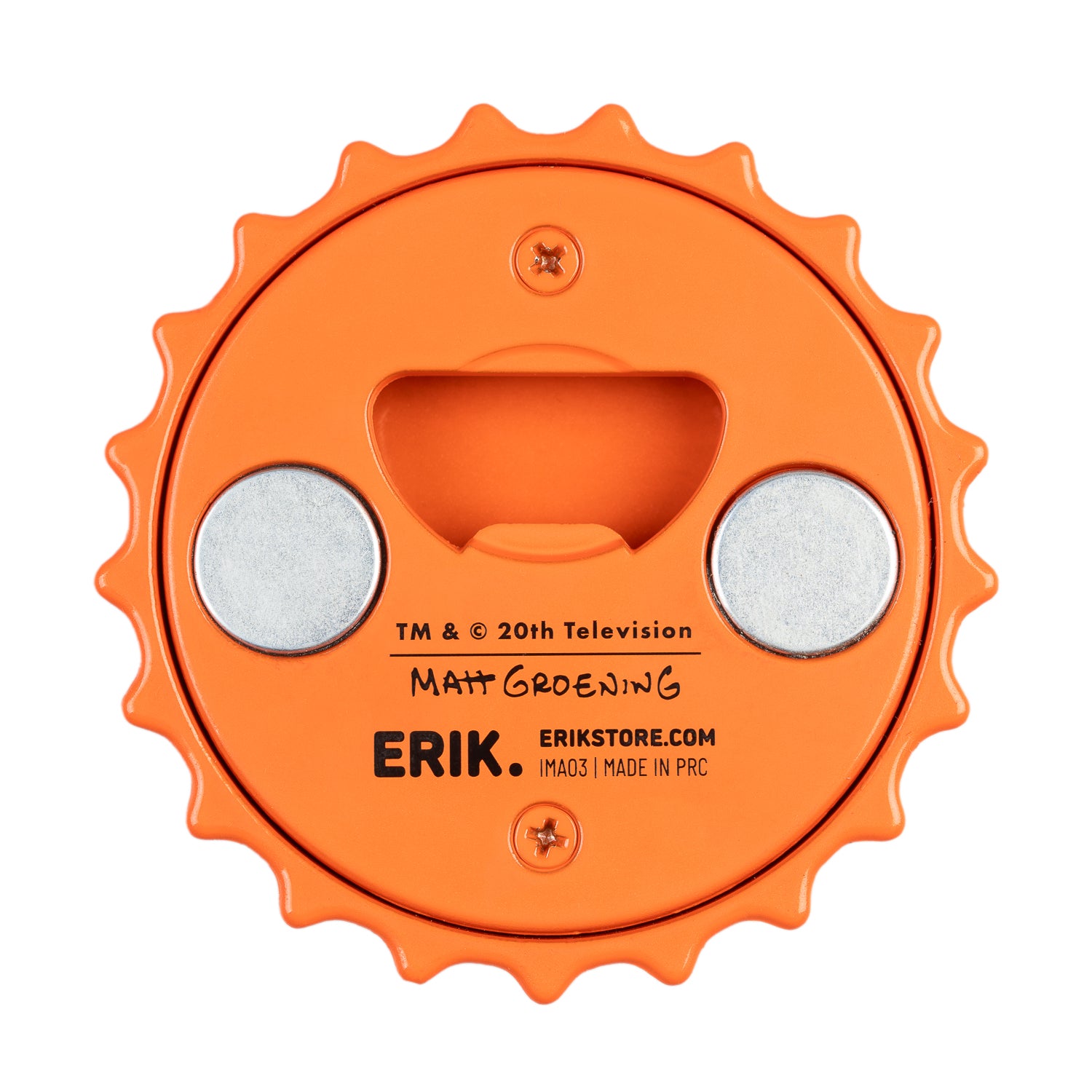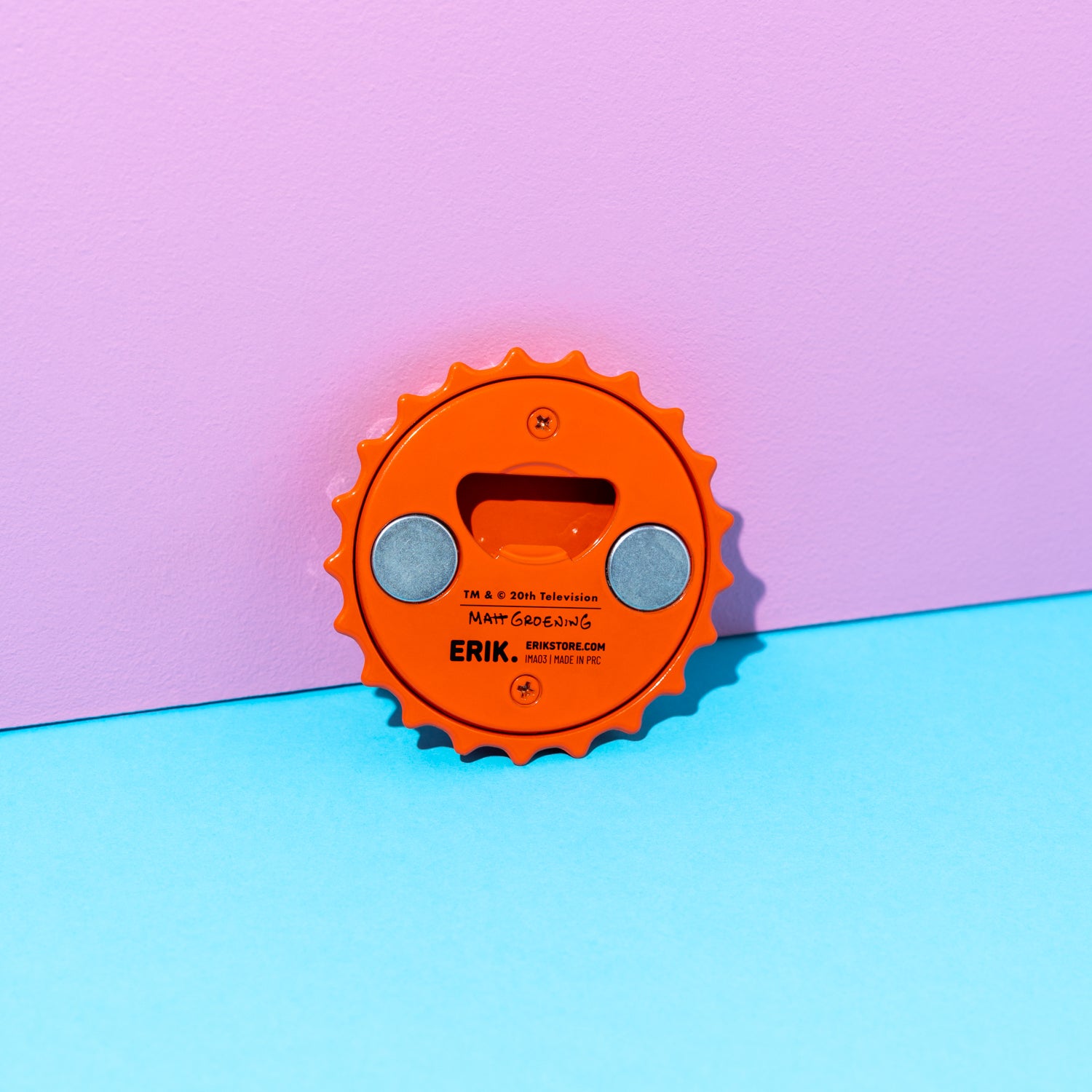 Magnete con apribottiglie dei Simpson con l'iconica Birra Duff, realizzato in lega di zinco e minerale di ferro (magnetite) con finitura smaltata. È dotato di un apribottiglie e di diversi magneti sul retro che consentono di fissarlo al frigorifero o a qualsiasi superficie magnetica. Misure: 7,1 x 7,1 x 1,5 cm. Ideale per aprire la Duff Beer.