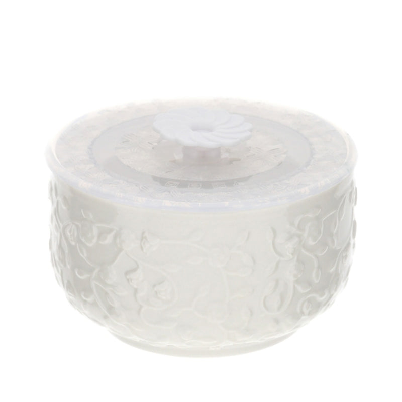 Il Contenitore in Porcellana Romance Bianco con Roselline, unisce eleganza e funzionalità. Realizzato in preziosa porcellana bianca con raffinata lavorazione in rilievo di roselline, è dotato di un pratico coperchio salva freschezza in plastica, ideale per conservare alimenti mantenendone aroma e qualità.