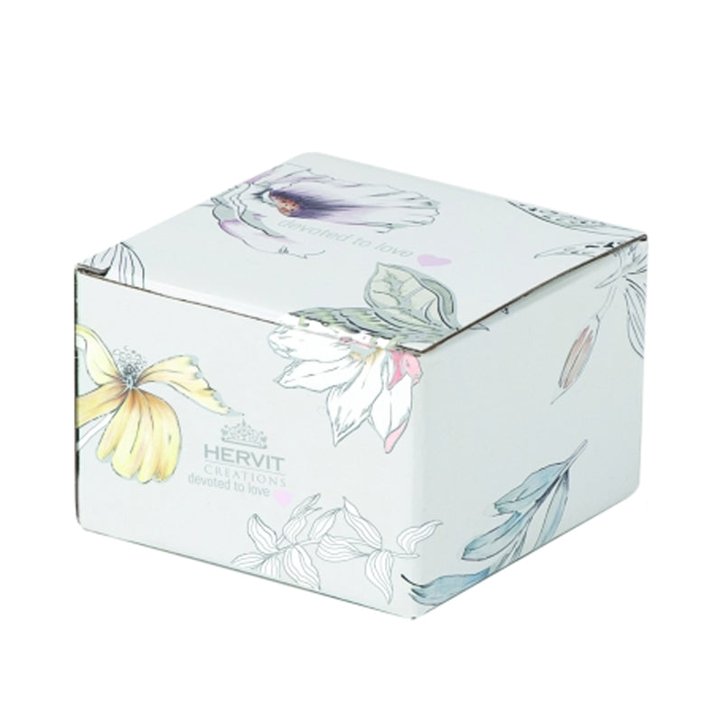 La confezione è un elegante valore aggiunto: fornito con scatola regalo bianca decorata con motivi floreali e rifinita con logo Hervit in lamina d’argento, questo contenitore diventa un regalo raffinato e perfetto per occasioni come anniversari, matrimoni, compleanni, o come bomboniera elegante. Dimensioni: Diametro 10 cm. × 6 cm. Un accessorio romantico, pratico e senza tempo, che aggiunge un tocco di classe alla tavola e alla cucina.