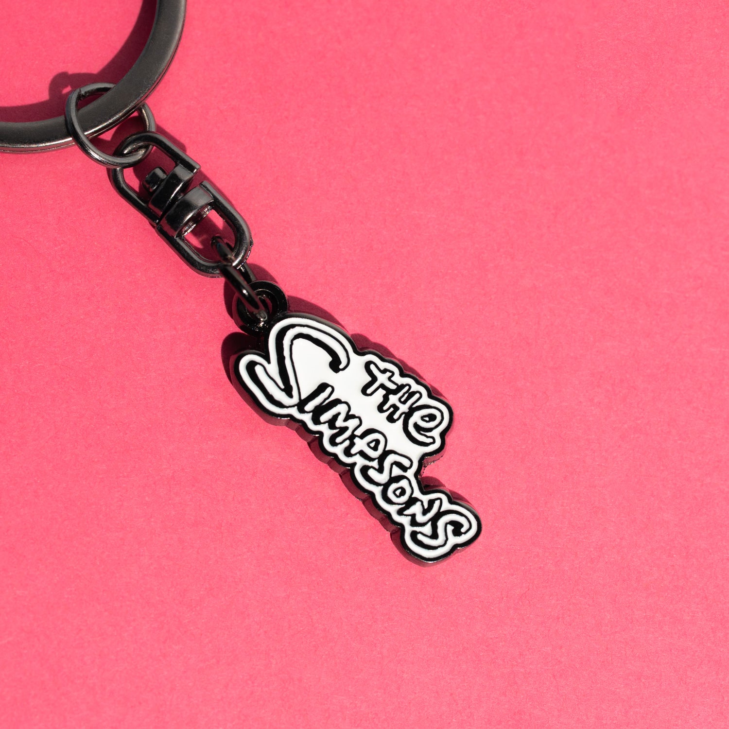 Portachiavi dei Simpson. Realizzato in lega di zinco con finitura smaltata. Include anello, catena e un elemento decorativo aggiuntivo con catena propria. Ideale per raggruppare e portare con sé diverse chiavi in modo organizzato. Misure: 4,8 x 11,5 cm.
